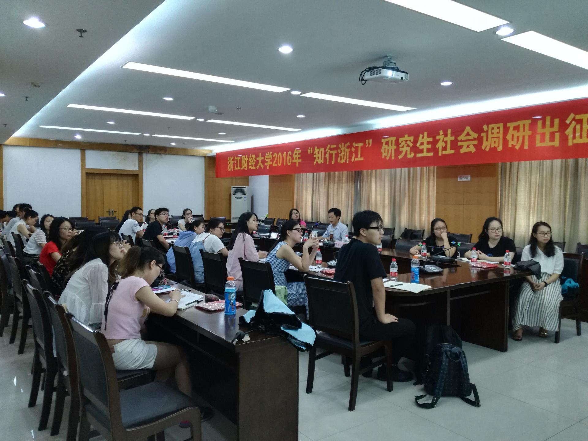 7月4日下午,我校2016年“知行浙江”研究生社会调研出征仪式暨调研方法培训会在行政楼200室举行。校党委研工部负责人、各立项团队负责人参加了会议。