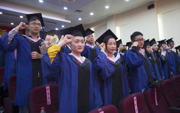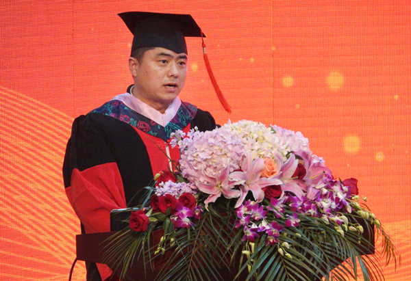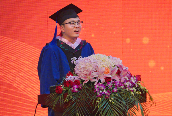 导师代表李井奎、毕业生代表汪义山、在校生代表房小田分别在典礼上发言,毕业生代表方妍带领全体毕业生宣读毕业誓词。