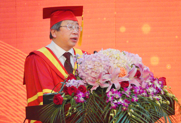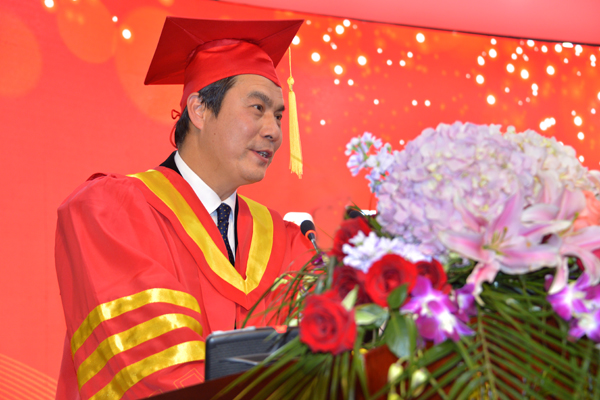 典礼上,校长钟晓敏发表了热情洋溢的讲话。他代表学校向顺利完成学业的2018届毕业生表示祝贺,并向同学们提出了四点希望:一要笃信好学,以奋进的姿态拥抱新时代,始终以正确的人生观、价值观去面对选择、甄别善恶、坚守底线,树立终身学习的观念,坚持边学习、边实践、边成长;二要胸怀祖国,以高度的责任感担当新使命,心系祖国安危、民族复兴和人民福祉,经邦济世,服务社会,努力成为时代的建设者、开拓者和引领者;三要求实创新,以探索的精神开启新征程,把握历史机遇,敢想敢干、大胆探索、勇于创新、敢于突破,同时坚持脚踏实地、埋头实干,决不好高骛远、凌空蹈虚;四要勇立潮头,以强烈的进取心彰显新作为,站在前人的肩膀上,不断完善自我、超越自我,开创事业新局面。