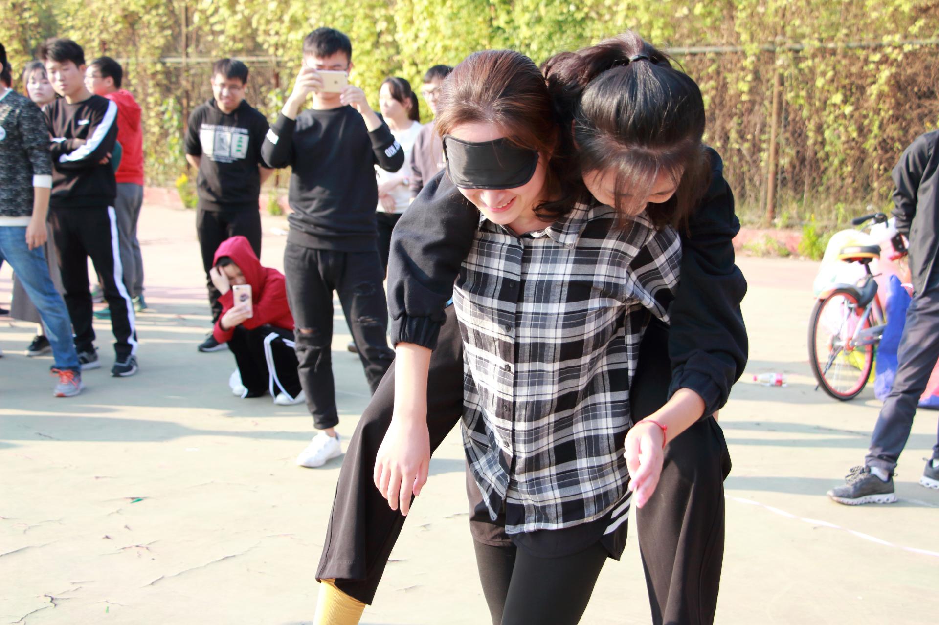 运动会在欢快动感的开场舞中拉开序幕,比赛项目分个人、寝室、集体三类。个人项目为“瞎子背瘸子”、“袋鼠运瓜”、“踩挤大战”,凭的是个人实力,同学们各展所长,“表情包”引得现场笑声连连。寝室项目和集体项目“搭桥过河”、“螃蟹运球”、“击鼓颠球”和“链接加速”等,考验的是团队的分工与协作能力,参赛队员们各个斗志昂扬、齐心协力、互相支持。