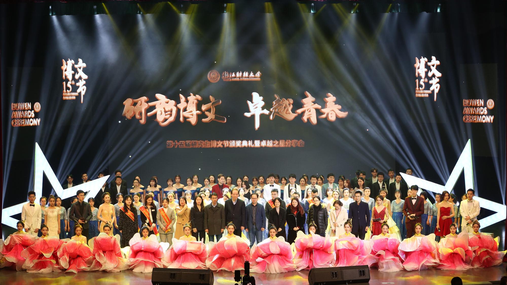 颁奖典礼上,校领导为第十五届研究生“博文节”系列活动获奖代表颁奖。