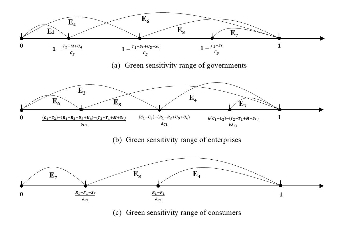 图二 不同稳定均衡点的敏感度区间