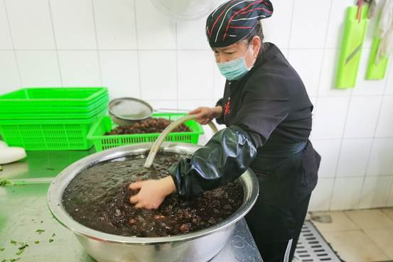 活动当天,餐饮部员工一大早便开始准备。食堂阿姨们将提前泡发的桃胶清洗、切碎,而后放入锅中大火熬制,待到桃胶烧开再换小火继续熬,期间加入红枣、枸杞等养生原料,出锅时再撒上一把桂花,用料扎实、口感丝滑、色香味俱全,是舌尖盛宴,亦是滋补佳品。午餐时分,派送现场弥漫着阵阵欢声笑语,每一碗羹汤里都饱含着后勤服务中心满满的节日祝福。