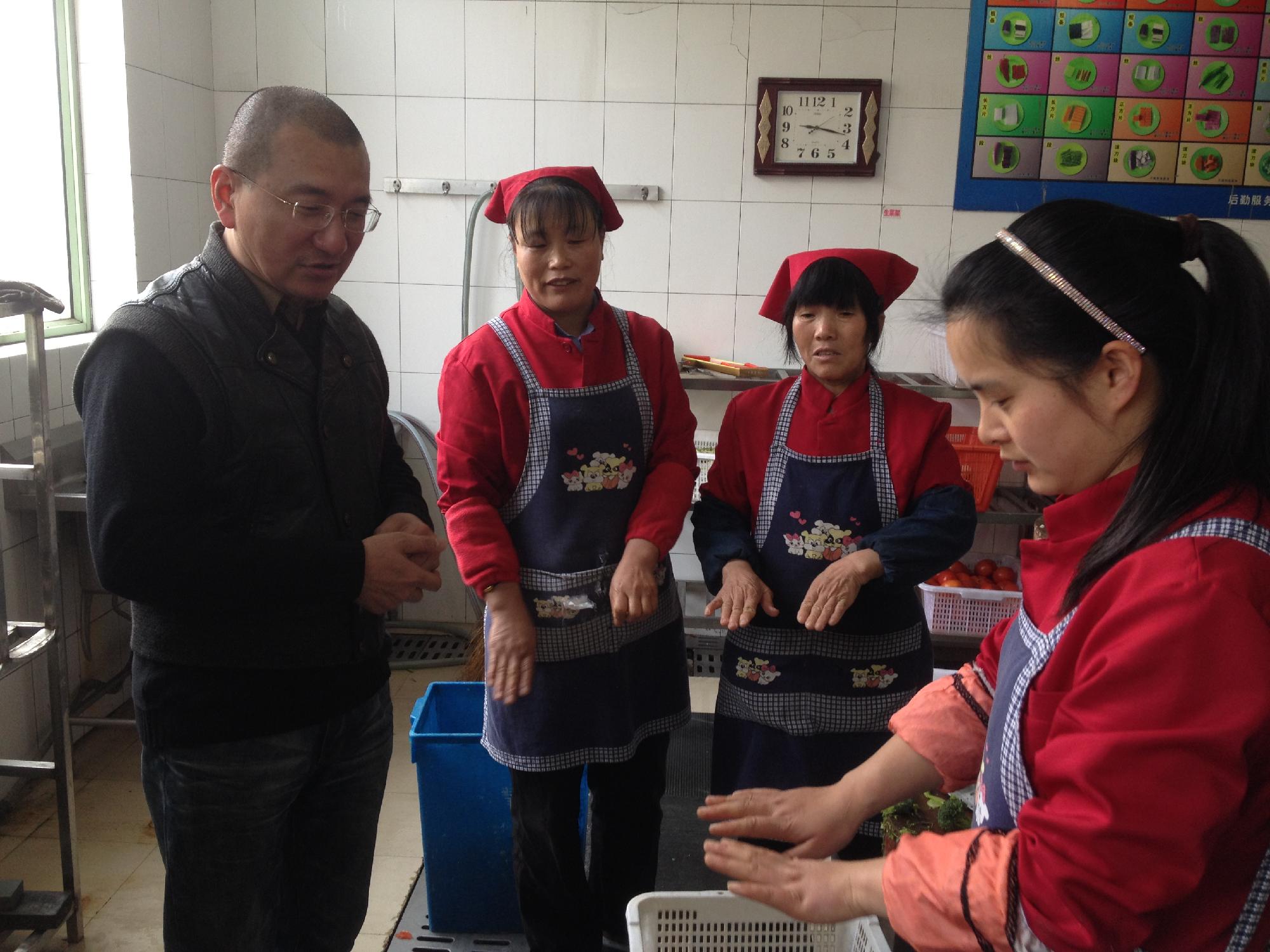 作为监控部三月份食品安全大检查的第三站,3月27日上午,监控部督察员在部门负责人的带领下,对文华餐厅和学术餐厅的员工个人卫生进行了突击检查,并对前几次食品安全系列检查的整改情况进行了复查。