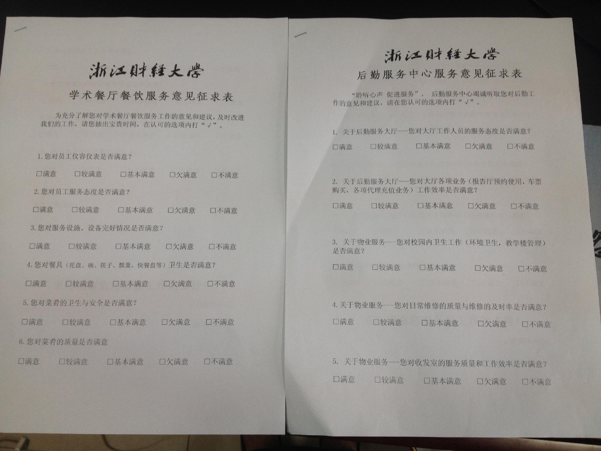 为真实了解广大师生员工对后勤服务工作的意见,完善后勤服务监管体系,全面检查和考评后勤服务工作,不断提高服务质量,改善服务态度,规范管理,构建新型的后勤保障体系,更好地发挥学校后勤服务对教学与科研的保障作用,6月27日中午,后勤服务中心监控部联合校学生权益部,在学术餐厅针对广大教职员工开展了一次后勤服务满意度调查活动。为确保此次调查的客观公正性,所有调查问卷均由校学生权益部干事发放并回收统计。