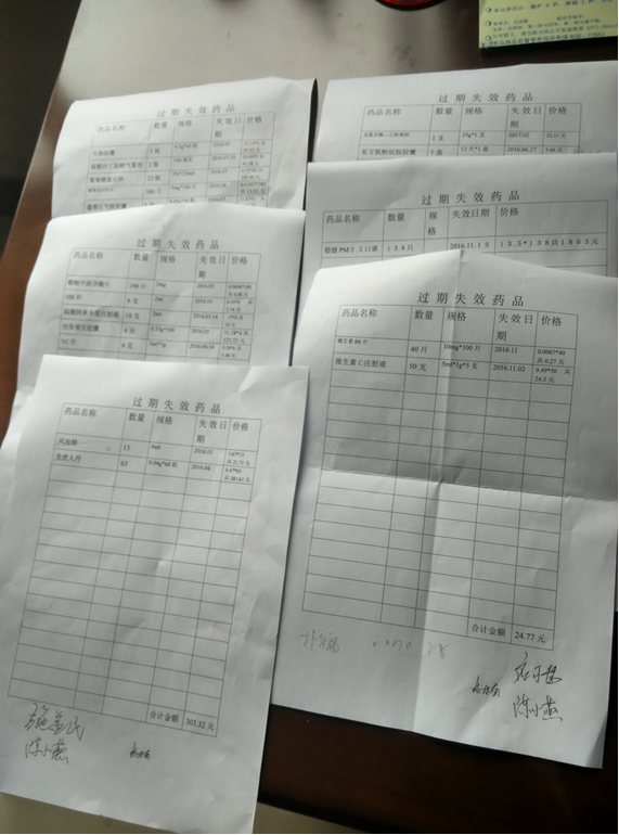 自查内容分为两部分:一、对新进药品的品种核查。我校校医院药师为了服务广大师生患者,经过多次与供药厂家的协商,申请新进了一批慢性病患者常用药,如:伏格列波糖片、生血宁、地奥司明片、优甲乐等,方便了师生患者就近配药,得到了患者的好评;二、对过期药品的核查。这次共查出过期药品涉及PM2.5口罩、VC针、藿香正气软胶囊、生脉胶囊、醋酸泼尼松片等15个品种,合计金额1863元,以上过期药品由专业机构回收销毁。