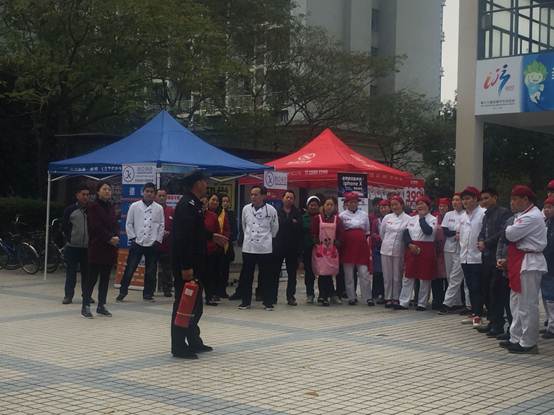 为进一步加强员工的消防安全知识,本着“预防为主,防消结合”的宗旨,提高员工的安全意识和自救自护能力,11月28日下午,监控部联合校保卫处,在文华食堂小广场开展了消防灭火演练。现场准备了近40个灭火器,中心餐饮部、物业部等部门近百名员工参加了本次活动。