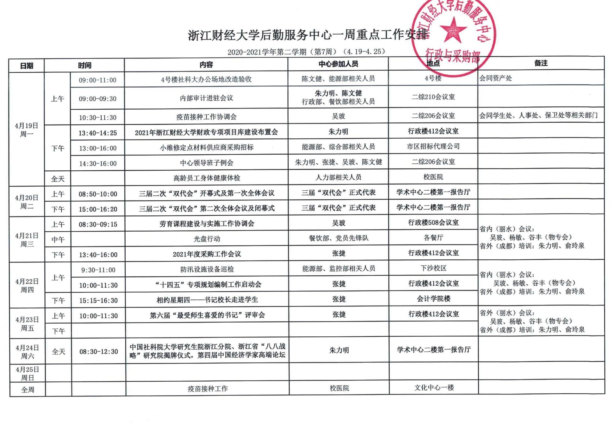 一周重点工作安排(4.26-5.2)