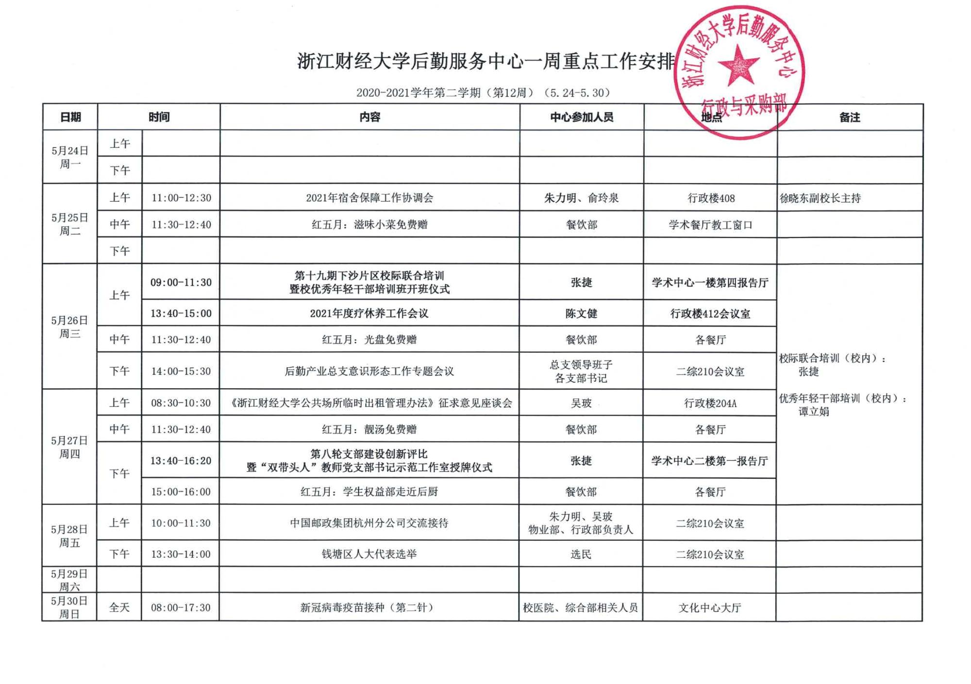 一周重点工作安排(5.24-5.30)