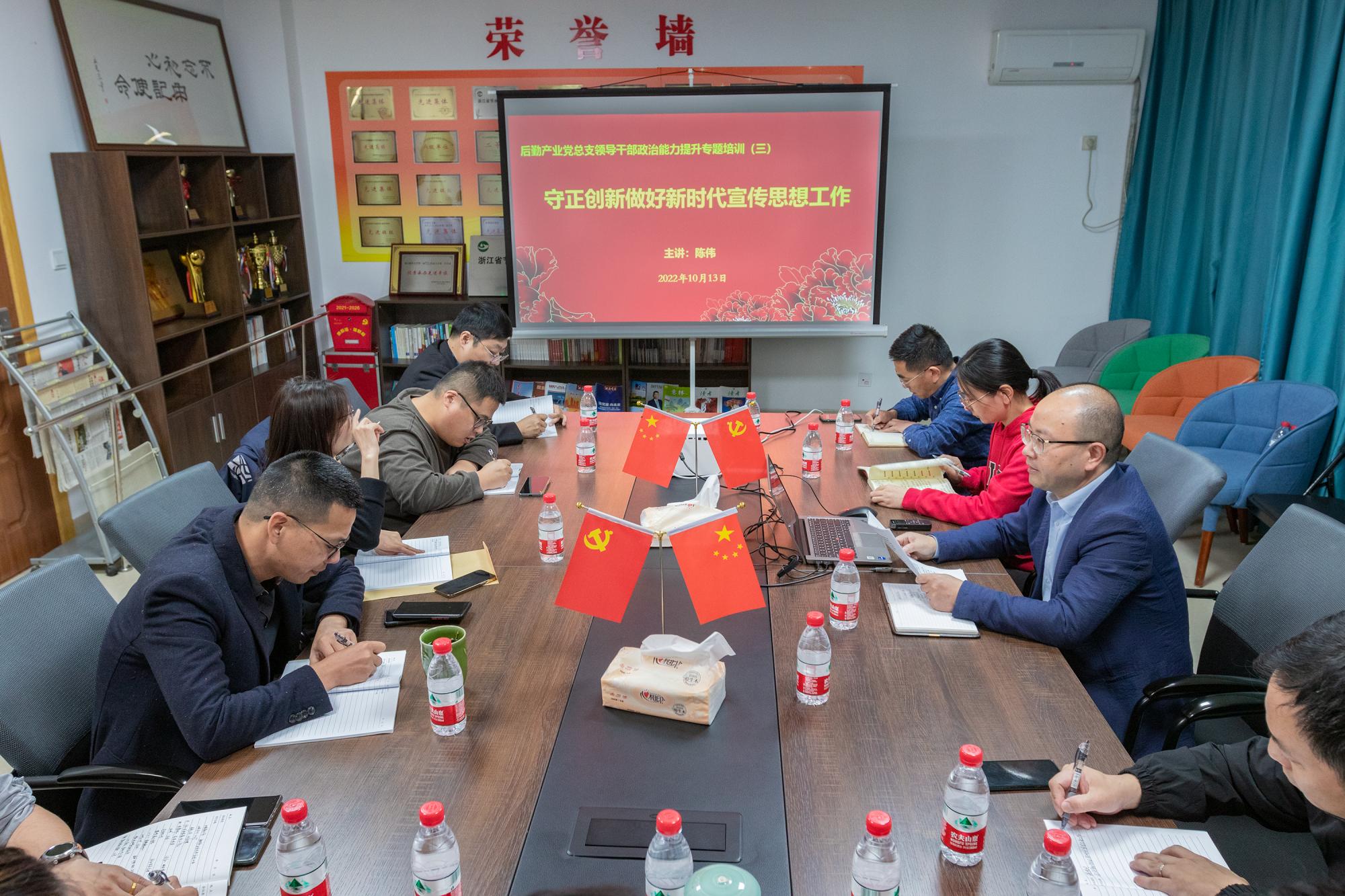 后勤产业党总支委员陈伟以《守正创新做好新时代宣传思想工作》为题,就如何做好新时代宣传思想工作进行了专题辅导。他强调要进一步加强党对宣传工作的全面领导,坚持正能量是总要求、管得住是硬道理、用得好是真本事,从内容形式、载体渠道、服务方式上守正创新,确保宣传工作始终沿着正确方向不断前进。