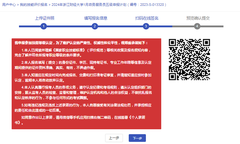 注:请考生检查报名信息是否正确。如需更改,请点击上一步进入到信息提交界面修改个人信息。