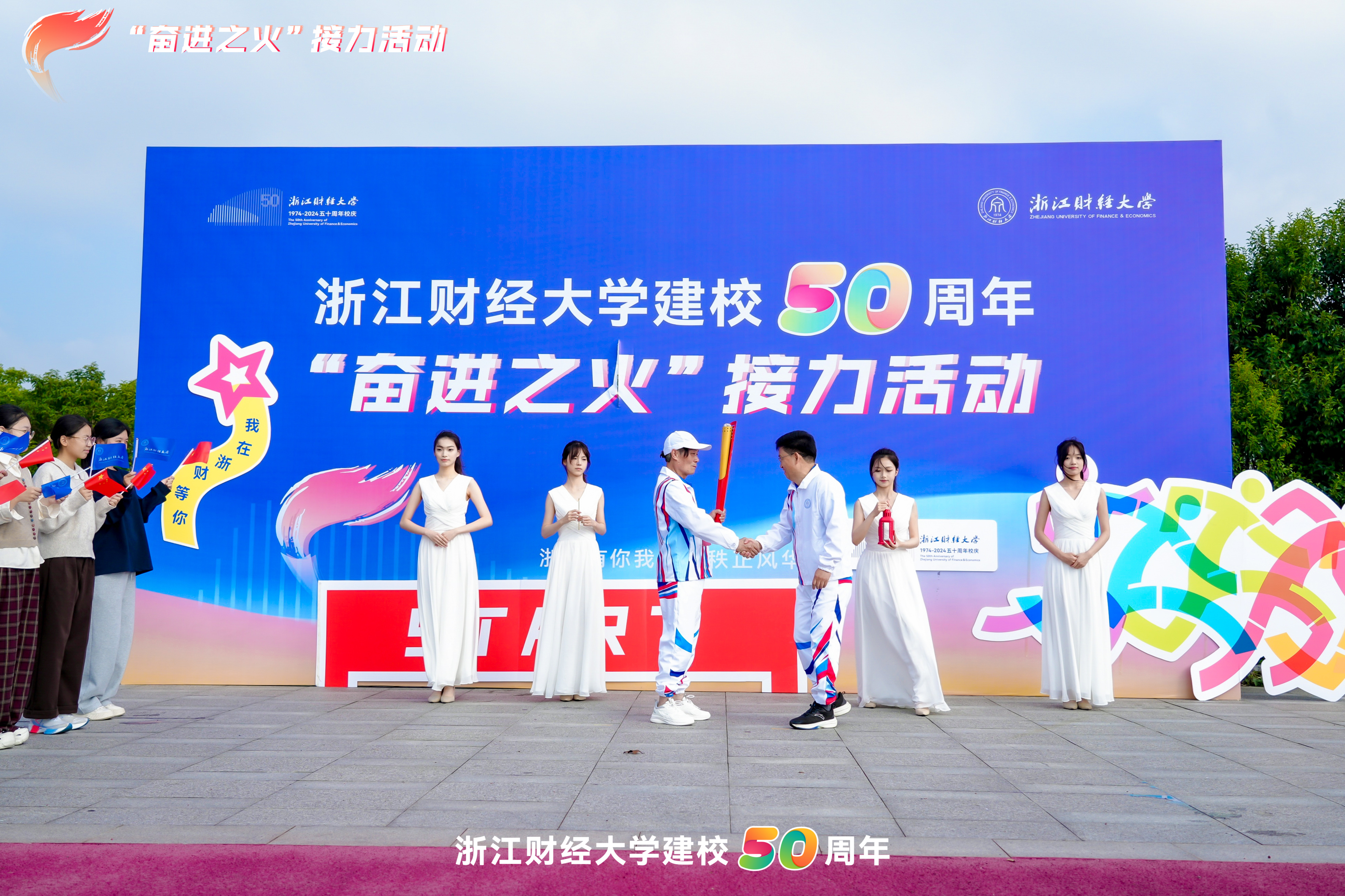 本网讯 11月2日上午,ued体育 50周年校庆系列活动之“奋进之火”火炬传递接力活动在钱塘江江堤举行。50名师生校友,高擎纪念办学50周年火炬,在钱塘江堤进行50棒接力跑。“奋进之火”火种采自学校办学起始地杭州七堡蚕种场,由校运动员代表护送火种,途经乌龙庙、文一路94 号、文华路269号,沿着学校办学足迹,护送至钱塘江堤。校党委委员、副校长董进才将第一棒火炬交给浙江财政银行学校首届毕业生蔡华东,他手持火炬,迈...