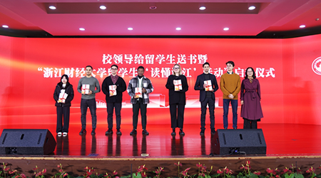 活动举行了留学生“读懂浙江”活动启动和赠书仪式。魏江亲手将“读懂浙江”留学生国情教育活动旗交到留学生手里,让留学生多走进浙江、了解浙江。