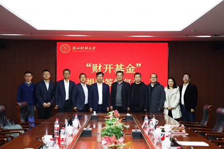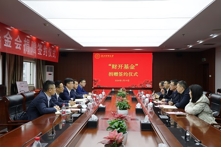 本网讯1月19日,浙江省财务开发有限责任公司捐赠签约仪式在下沙校区举行。浙江省财开公司向学校捐赠一百万元,支持学校办学。校党委副书记徐晓东,浙江省财开公司党委副书记、董事、工会主席李卫星等出席仪式。