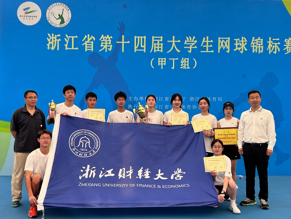 本网讯5月6日至11日,浙江省第十四届大学生网球锦标赛(甲丁组)在浙江大学举行。我校运动健儿取得女子团体冠军、女子单打冠军、女子双打亚军、女子单打第四名、男子团体第八名的佳绩,学校获得“体育道德风尚奖”,罗旭获得“优秀教练员”称号,黄千姗、包兆嘉获得“优秀运动员”称号。