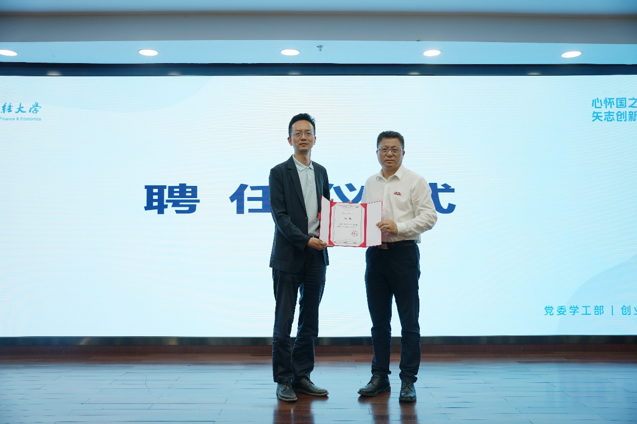 魏江为阮俊华教授颁发“ued体育 思政教育特聘顾问”聘书。阮俊华教授与学校4位辅导员举行“帮带结对”仪式。