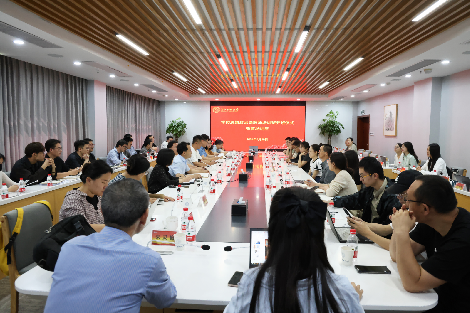 本网讯为深入学习贯彻习近平总书记对学校思政课建设作出的重要指示精神和新时代学校思政课建设推进会会议精神,守正创新推动学校思政课建设内涵式发展,5月28日,学校举行思想政治课教师培训班开班仪式暨首场讲座。校党委副书记程爽、党委宣传部、教务处、马克思主义学院相关负责人、全体思政课教师、辅导员代表参加会议。会议由党委宣传部部长王正新主持。