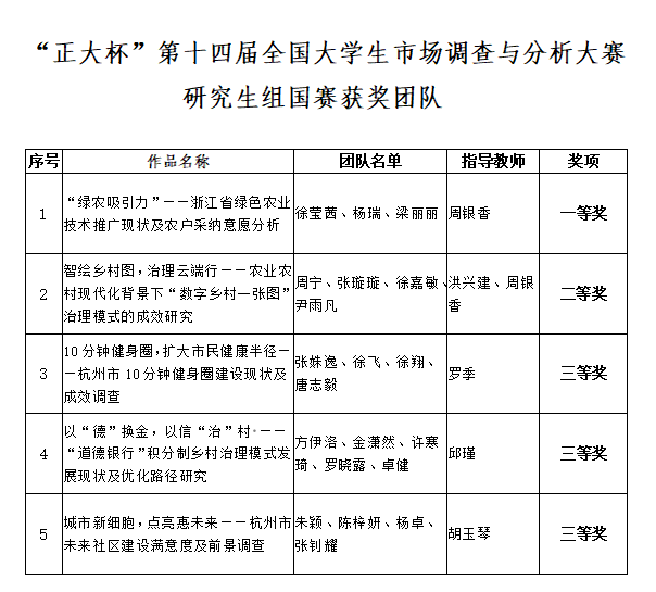 本网讯近日,“正大杯”第十四届全国大学生市场调查与分析大赛研究生组总决赛在哈尔滨举行,学校荣获一等奖1项、二等奖1项、三等奖3项。