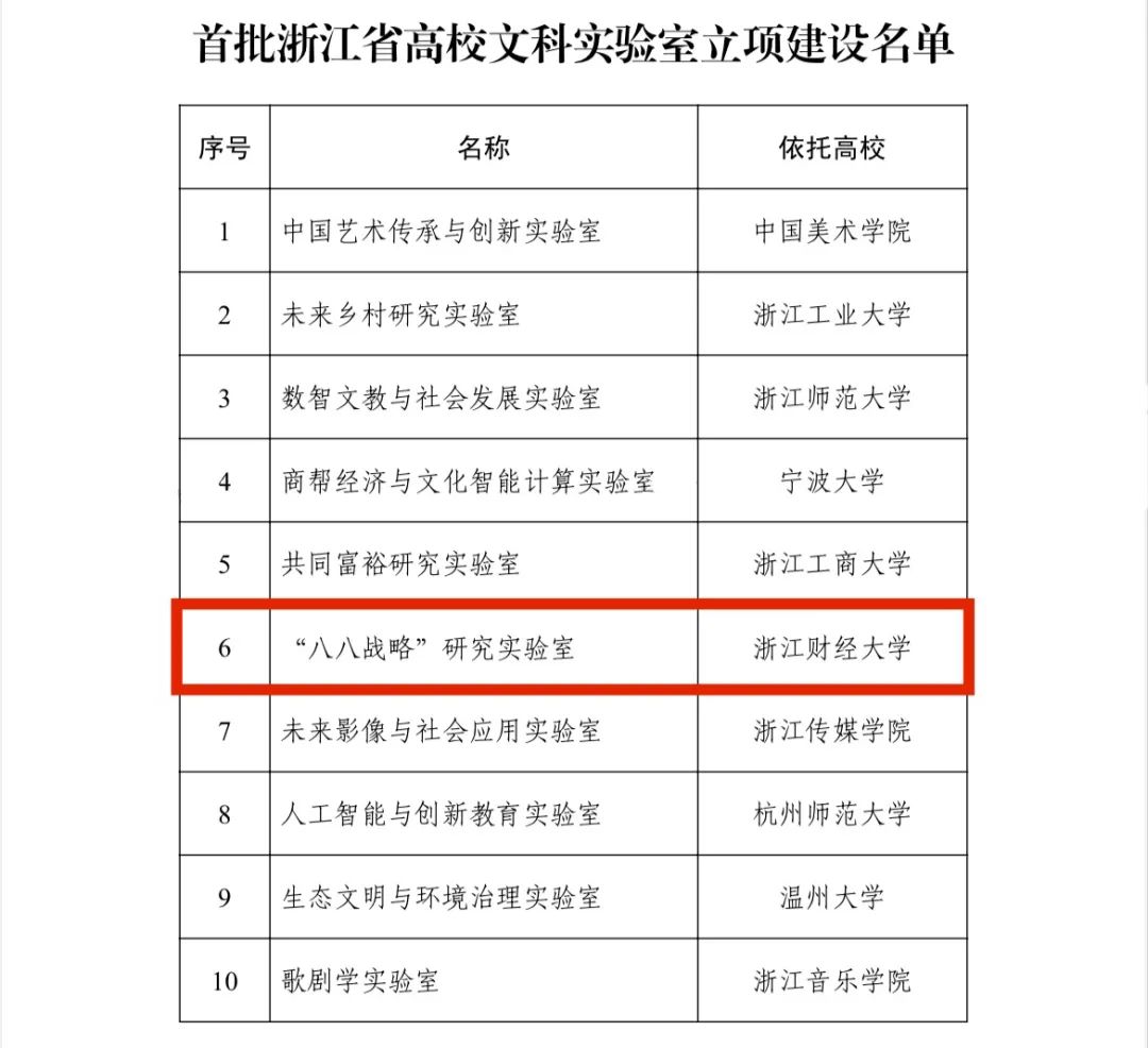 本网讯近日,浙江省教育厅发布了《浙江省教育厅关于公布首批浙江省高校文科实验室立项建设名单的通知》,学校“八八战略”研究实验室成功入选首批浙江省高校文科实验室。