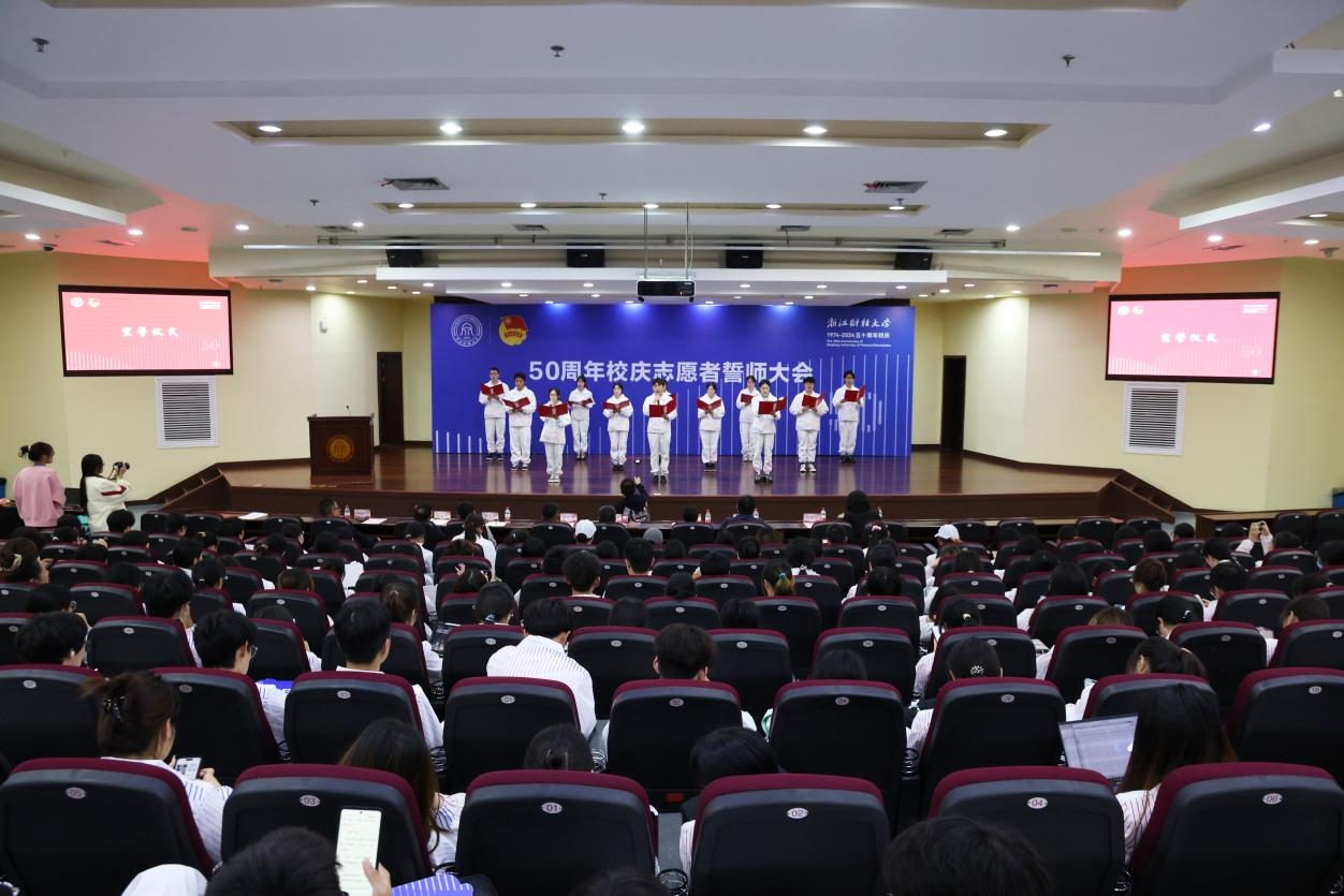 本网讯10月29日,学校50周年校庆志愿者誓师大会在下沙校区举行。校党委副书记徐晓东出席誓师大会,党校办、宣传部、学工部、安全保卫部、发规处、校友办、档案馆、后勤服务中心、校团委等相关职能部门负责人参加活动。
