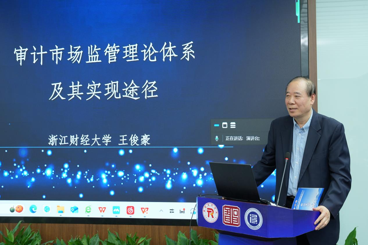 王俊豪教授进行了会议总结,并作题为“审计市场监管理论体系及其实现途径”的主旨演讲。