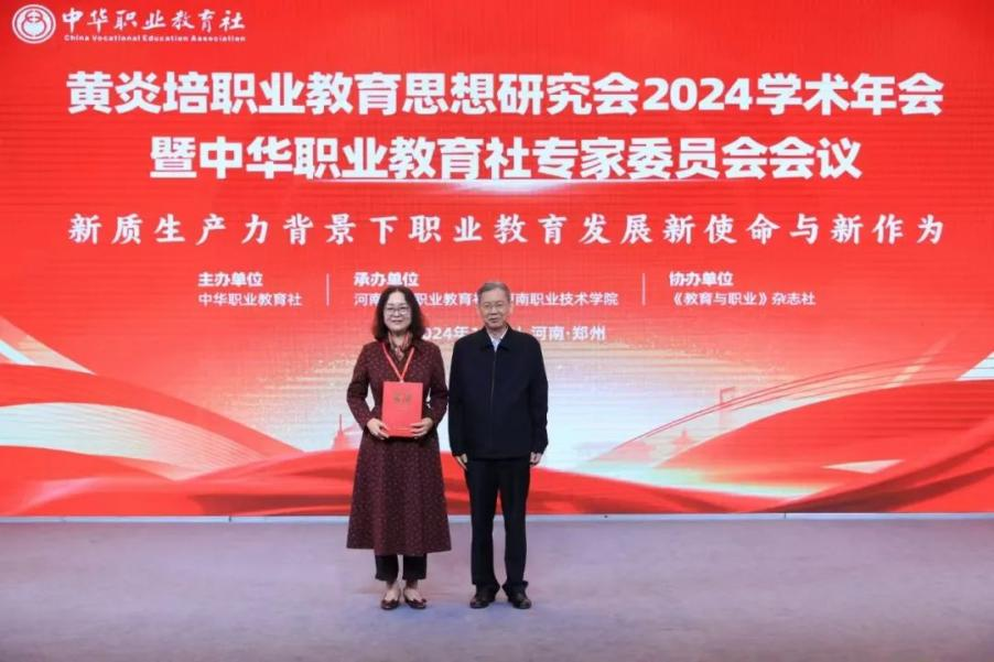 本网讯10月30日至31日,副校长郑亚莉参加了中华职业教育社在郑州举办的黄炎培职业教育思想研究会2024学术年会暨中华职业教育社专家委员会会议。全国人大常委会副委员长、中华职业教育社理事长郝明金出席并作了题为《弘扬黄炎培职业教育思想新时代内涵 推动职业教育更好赋能新质生产力发展》的主旨讲话。郝明金为郑亚莉等专家委员颁发中华职业教育社新一届专家委员会委员聘书并合影,郑亚莉在“职业教育赋能新质生产力”专题研讨会上作了交流发言。