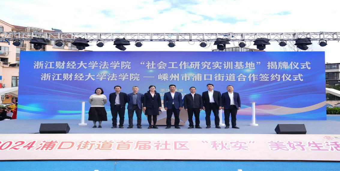 本网讯为贯彻落实习近平总书记对社会工作重要指示精神,进一步强化基层治理创新和社会工作人才队伍建设,11月7日,学校法学院“社会工作研发实训基地”在嵊州市浦口街道揭牌。校党委副书记程爽、绍兴市委社会工作部副部长王伟民、嵊州市委副书记、社会工作部部长余丹,法学院负责人等参加签约仪式。