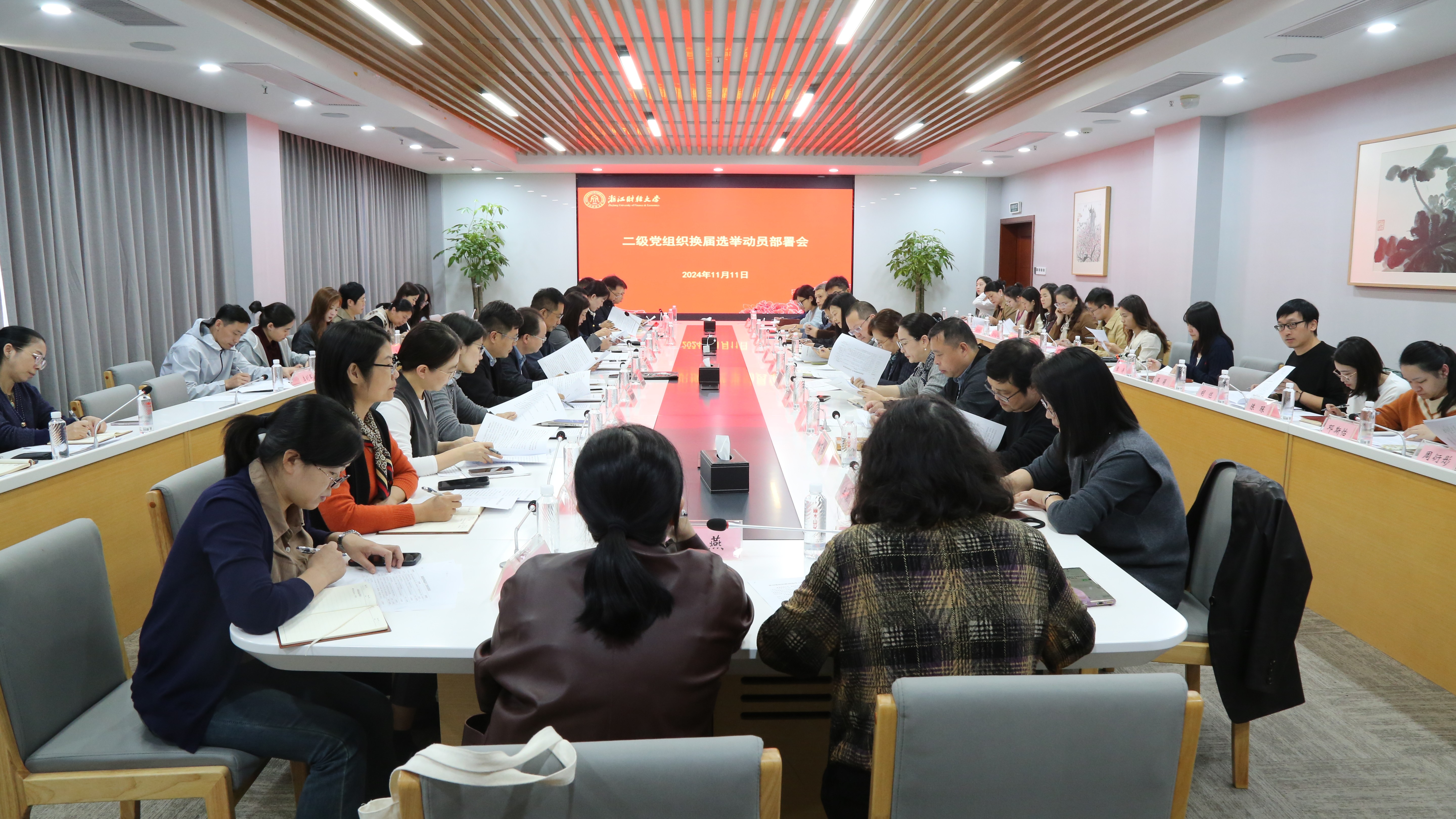 本网讯11月11日,学校召开二级党组织换届选举动员部署会议。校党委副书记程爽出席会议并讲话,党委委员、组织部部长申屠莉主持会议。党校办、组织部、宣传部、纪检监察室负责人及各二级党组织书记、专兼职组织员参加会议。