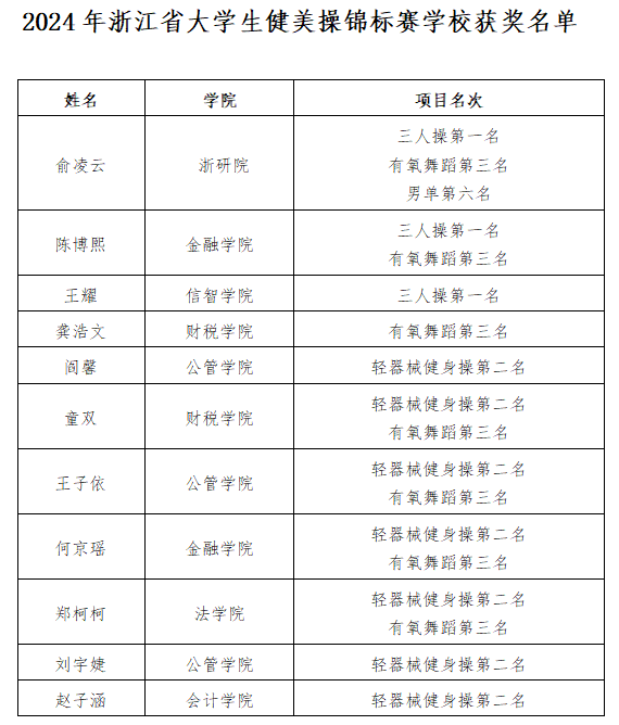 本届比赛由浙江省教育厅、浙江省体育局主办,共设置9个比赛项目,吸引了来自省内37所院校的621名运动员参加,我校共派出13名运动员,参加6个项目的比拼。