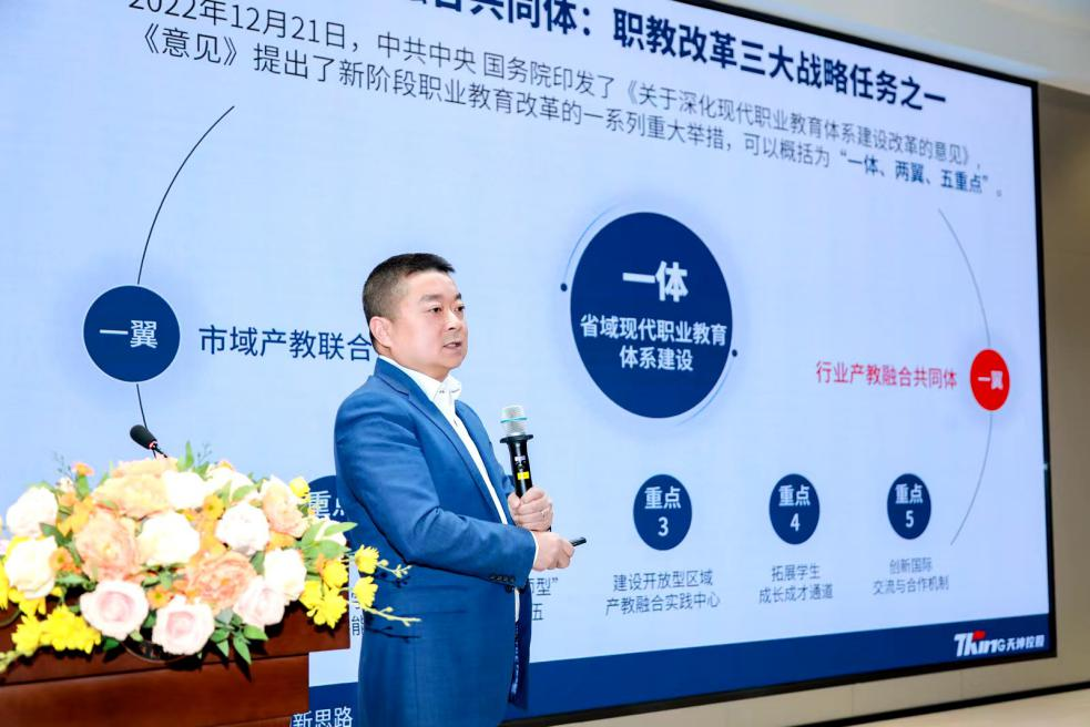 汪新君对本次论坛的顺利举办表示祝贺,希望人力资源产业学院能深化产教融合,加强与企业的合作,推动教育链、人才链与产业链、创新链的有机衔接,为区域经济社会发展提供强有力的人才和智力支持。