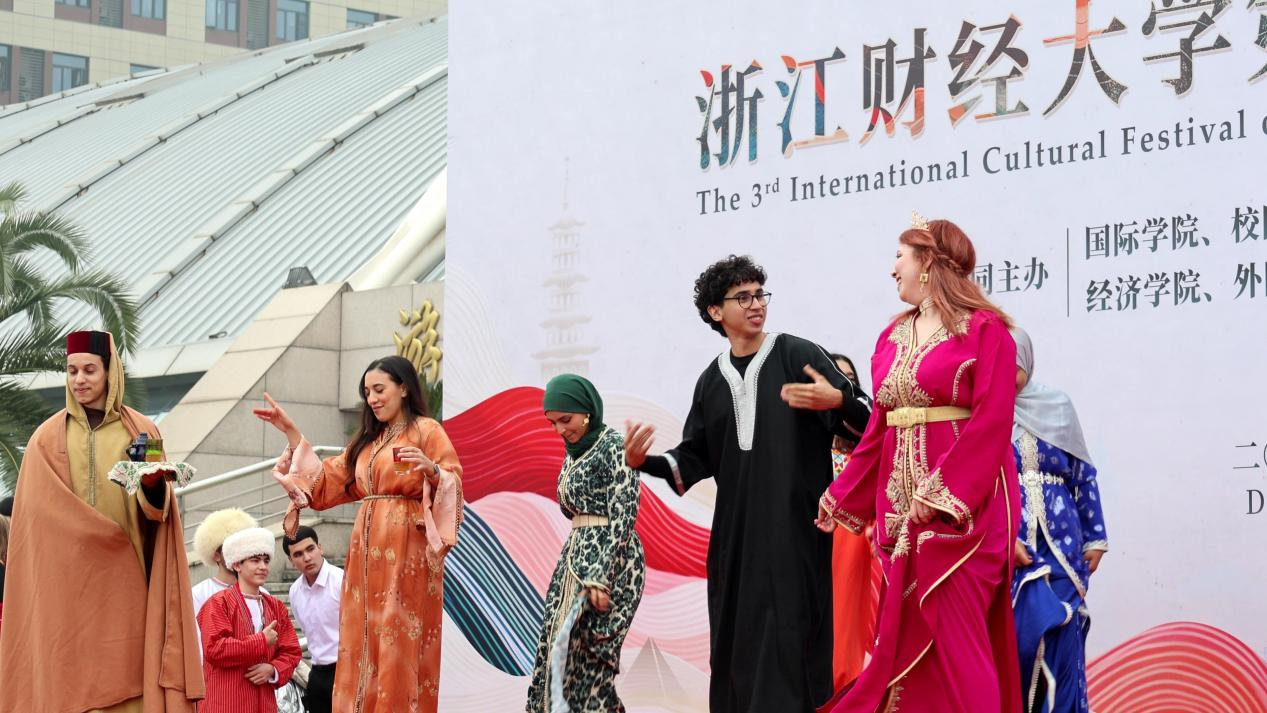 本届文化节以“融通世界 共享未来”为主题,旨在深化相互理解、增进友谊,共同绘制出一个更加紧密相连的世界图景。中外师生交流文化、互学互鉴,展示各自服饰、歌舞、美食等人文风情,吸引了众多师生前来体验“环游世界之旅”。