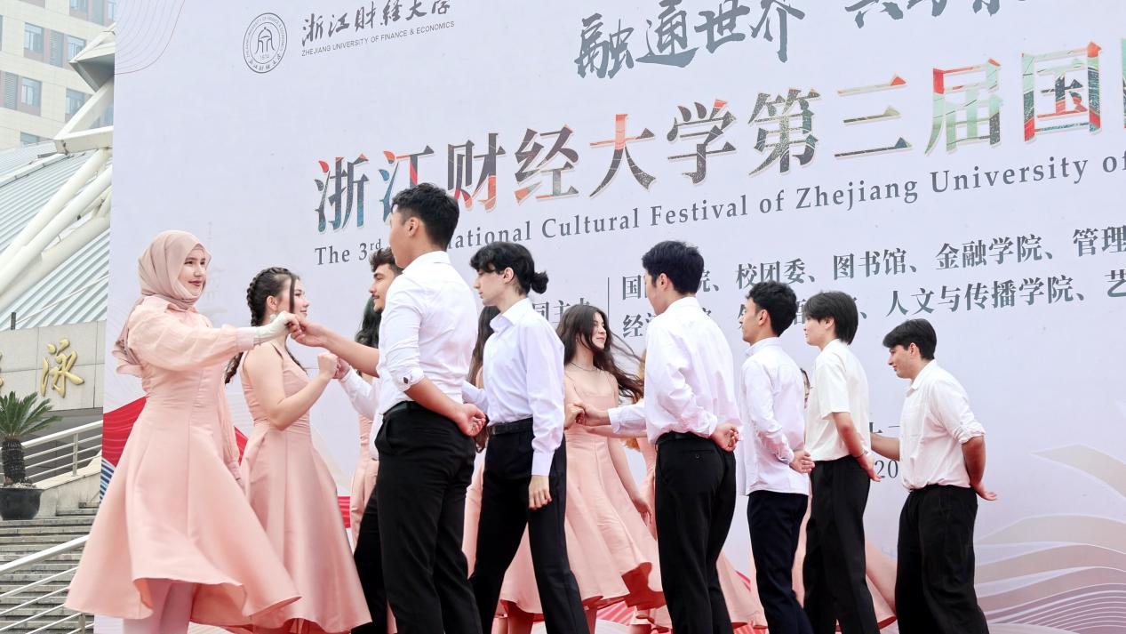 活动中,同学们各显神通,多国服装秀、歌曲、舞蹈等表演轮番上阵:时而是东亚清越的弦音,时而是非洲热情四射的舞步,时而又是草原静谧夜空下的低吟……才华横溢的浙财学子用自己的方式展现世界各国文化的魅力。
