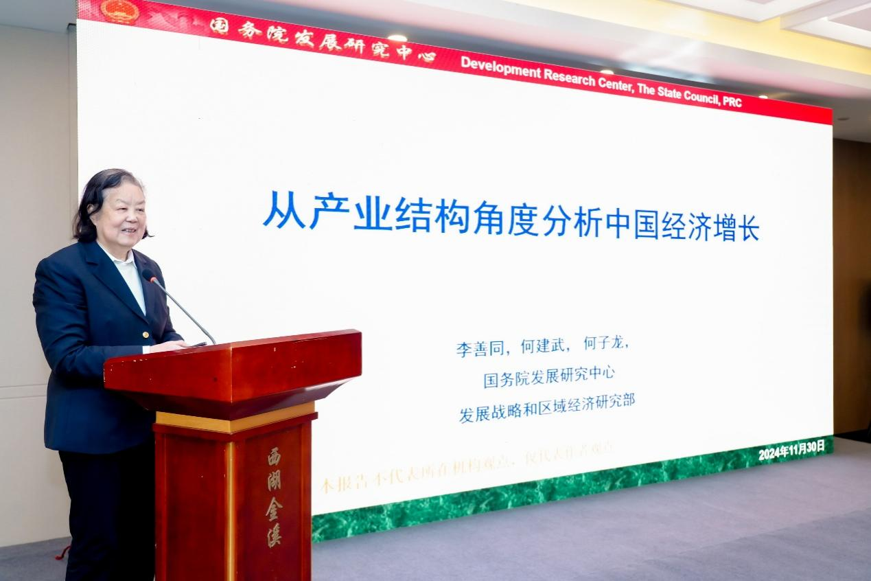 国务院发展研究中心发展战略和区域经济研究部原部长李善同研究员发表了题为“从产业结构角度分析中国经济增长”的主旨演讲。她指出,在从中高收入向高收入转型的重要时期,从产业结构视角出发可以更加深入分析影响中国经济增长的重要因素。她首先分析40余年来中国产业结构变动的趋势;在此基础上分别从三次产业自身增长、相对价格变动以及制造业与服务业融合发展三个不同角度深入剖析了影响了中国经济增长的结构性因素。她指出,近年来工业特别是制造业增长相对较慢、制造业相对价格的持续低迷以及服务业相对生产率较慢增长是三大结构性因素,今后促进经济稳定增长需要在保持工业竞争力、解决制造业供求关系以推动制造业价格持续上涨和加快提升服务业特别是非贸易部门生产率上下功夫。