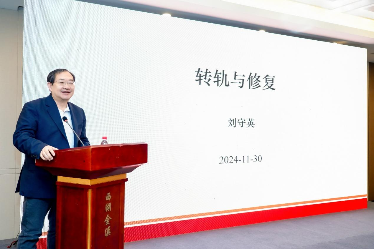 中国人民大学经济学院原院长刘守英教授发表了题为“转轨与修复”的主旨演讲。他从传统发展模式转轨的角度,深入分析中国的经济挑战。他指出,“以地谋发展”模式的红利期已经结束,然而这一模式带来的成本却在累积,给国民经济运行带来了巨大挑战。政策着力点应高度重视传统模式转变中的风险,以转型而非转轨保证平稳过渡和新旧动能接续。他认为,当前国家推出的一揽子列增量宏观政策调整有助于调整和恢复国民经济,但更重要的是切实贯彻全面深化改革,推动进一步的权利开放。他建议,要回到“转型”思维,切实落实两个毫不动摇,着力建设高水平市场经济体制;重点防止经济收缩,提升企业家预期;以落实政府化债为重点加强国家信用体系建设;以全国统一大市场体系和市场秩序建设畅通国民经济循环。