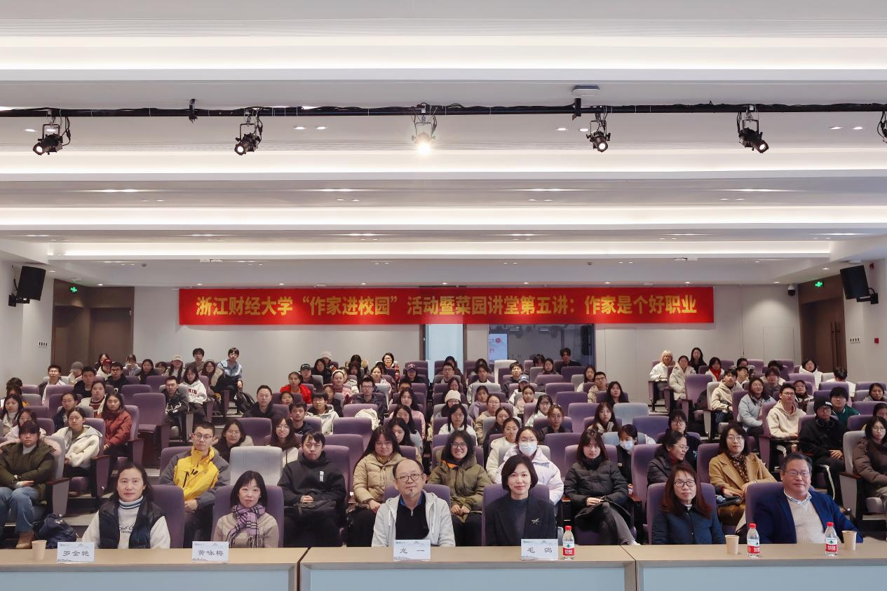 本网讯12月8日,“作家进校园”活动暨“菜园讲堂”第五讲在图书馆5楼西报告厅举行。著名作家、中国作家协会全委会委员龙一应邀作“作家是个好职业”专题讲座。党委宣传部、人文与传播学院相关负责人、图书馆、外国语学院等在校师生代表180余人参加活动。