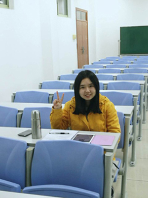 她坚信一个人几乎可在任何她怀有无限热忱的事情上成功。抱着这份热忱,她进入了自己喜爱的专业,始终严格要求自己,脚踏实地,勤勤恳恳,以自己独特的学习方法汲取着专业知识,她的付出得到了回报。在本专业的专业四级考试中获得了全年级唯一的优秀成绩。她连续两年班级综测排名第一,连续三个学年获得优秀学生一等奖学金和校级“三好学生”荣誉称号。在2014-2015学年荣获国家奖学金。2015-2016学年荣获省政府奖学金。
