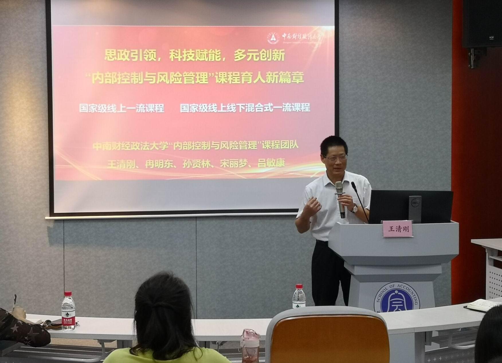 本网讯9月14日,会计学院举办一流课程(含课程思政)申报与建设专题讲座,邀请中南财经政法大学王清刚教授作题为“思政引领 科技赋能 多元创新课程育人新篇章——以中南财经政法大学‘内部控制与风险管理’课程为例”的专题讲座。