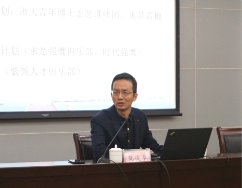 本网讯11月19日,浙江大学公共管理学院党委副书记、彩虹人生公益育人平台创始人阮俊华应邀来校作了一场题为“寻梦彩虹人生 创新育人新思路”的专题报告。各学院党委副书记、全体专兼职辅导员等聆听了报告会。报告会由学生处处长范建锋主持。