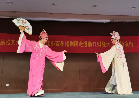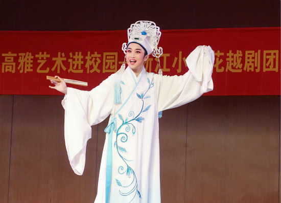 本网讯11月18日晚,由省教育厅、省文化和旅游厅、省财政厅联合主办的2019年高雅艺术进校园——浙江小百花越剧团专场演出在我校下沙校区精彩上演。