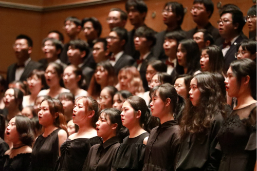 音乐会上,三校艺术团先后精彩亮相,演绎了20余首风格各异的合唱曲目。我校韵落钱塘合唱团献上了《梨花又开放》《阳关三叠》《The sound of silence》等9首耳熟能详的作品,带领观众感受了古今中外艺术歌曲的魅力。其中,与上海师范大学泊乐合唱团、杭州时代小学小磨坊合唱团共同演唱《海》,将音乐会氛围推向高潮。