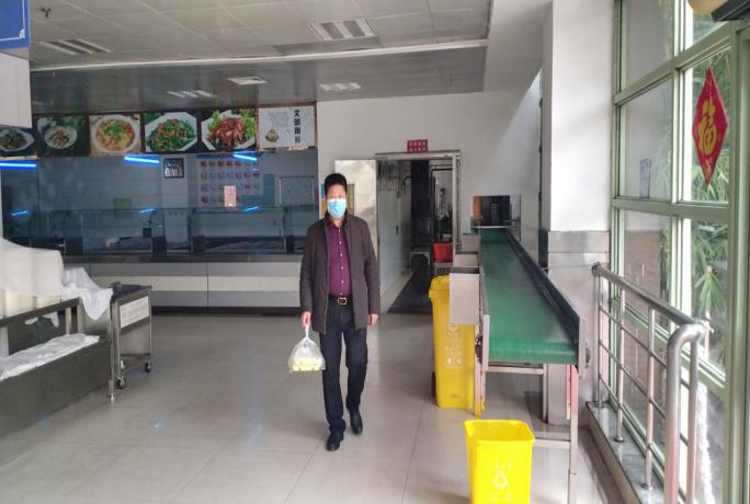 “食堂从来都最重视食品卫生与安全工作,疫情对于我们来说,只是需要做得更细了。我们原先用清洁剂,现在还需要再用上消毒水,但工作其实都是一样的。”疫情之下,他主动联系校医院领取消杀材料,并认真学习了病毒预防与消杀注意事项,及时向食堂员工普及了预防方法及消毒操作要点等,进一步强化了员工安全意识。在他的要求下,食堂每日开展桌面和地面消毒工作,每日2次开窗通风,餐具清洗消毒也更为仔细。防疫对原材料供货也带来了一定压力,为了保证餐饮服务不受影响,他在日常工作之余还需要与供货商保持联系,实时协调货物采购与运输事宜。目前,食堂供货渠道基本畅通无碍。