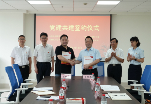 本网讯7月1日,计财处党支部与建行高新支行党总支举行党建共建签约仪式。副校长励如孟,建行高新支行党总支书记、行长谢信军等出席签约仪式。