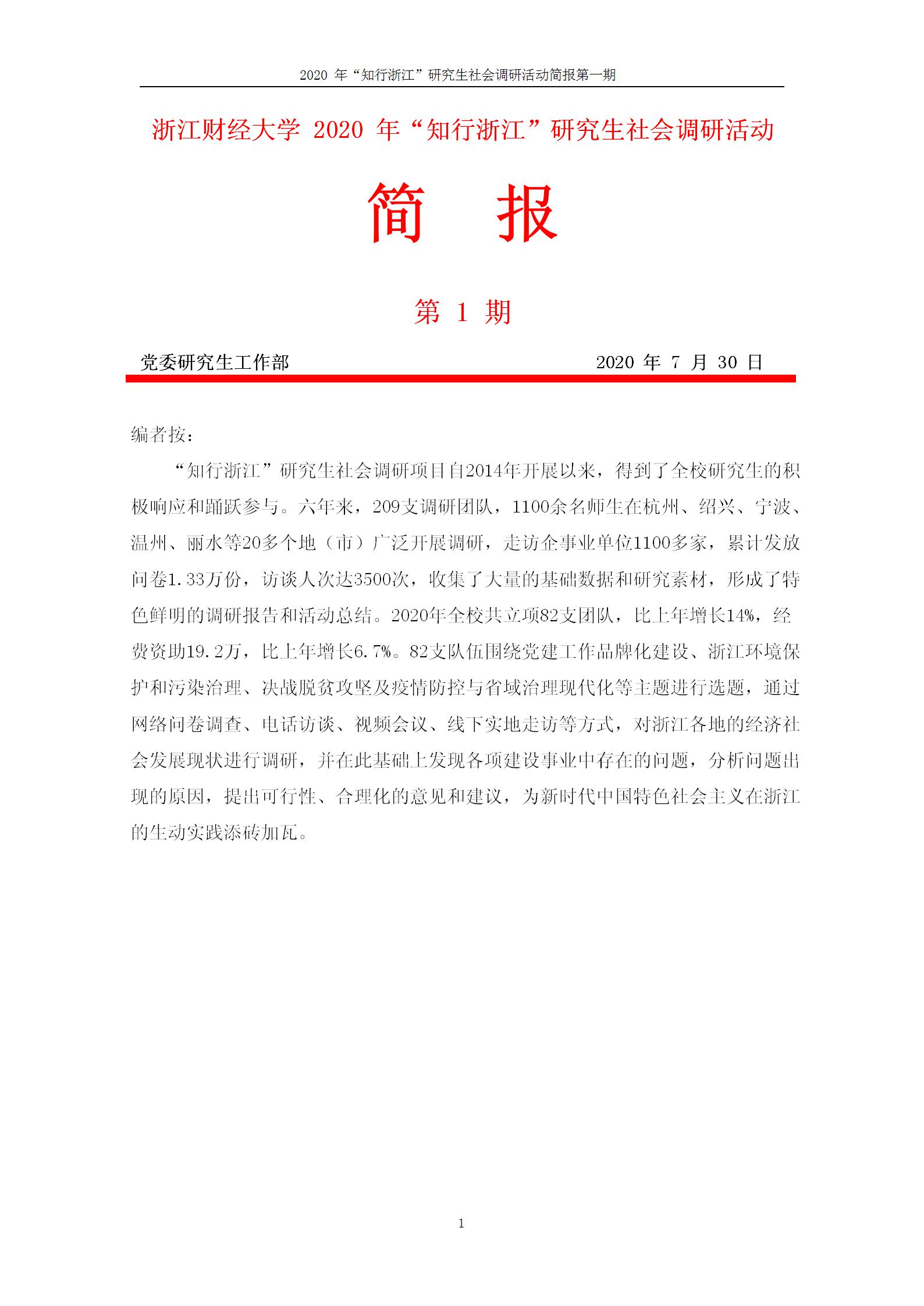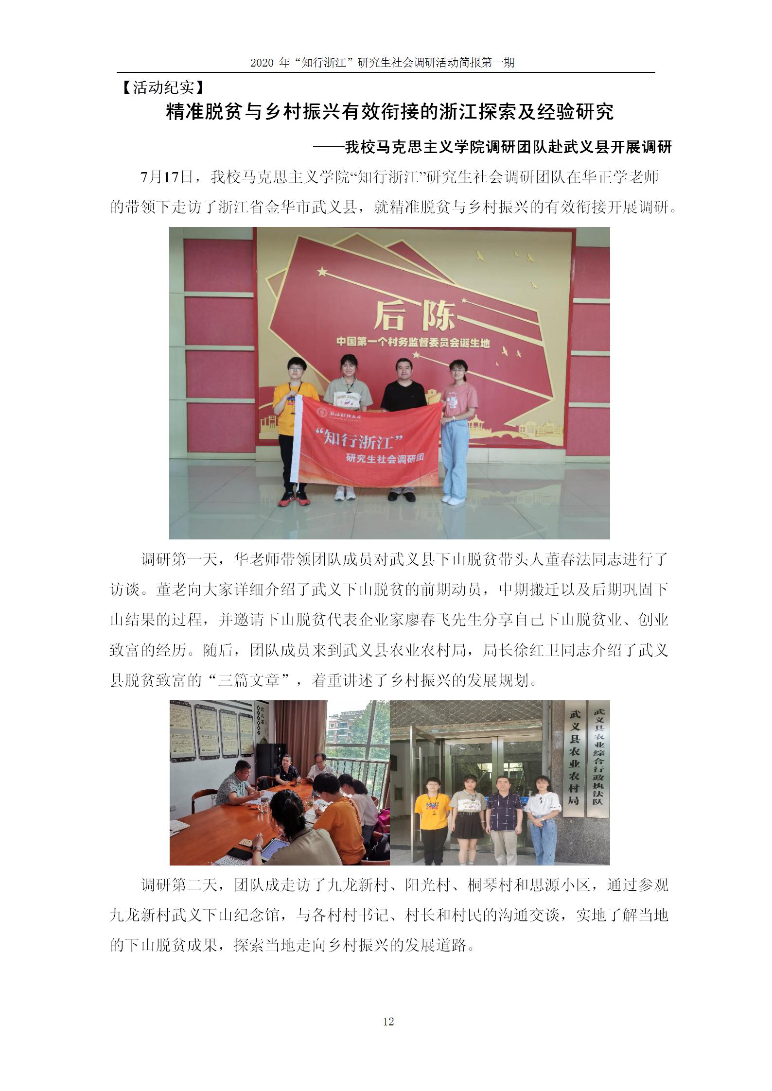 2020年“知行浙江”研究生社会调研活动简报第1期