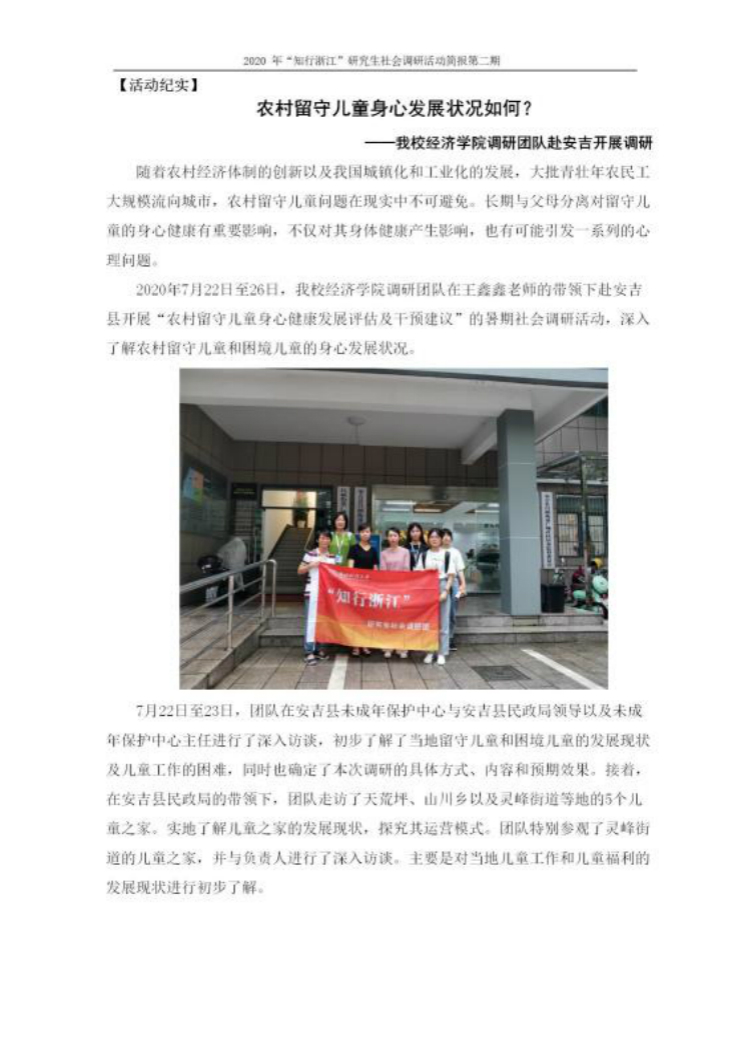 2020年“知行浙江”研究生社会调研活动简报第2期