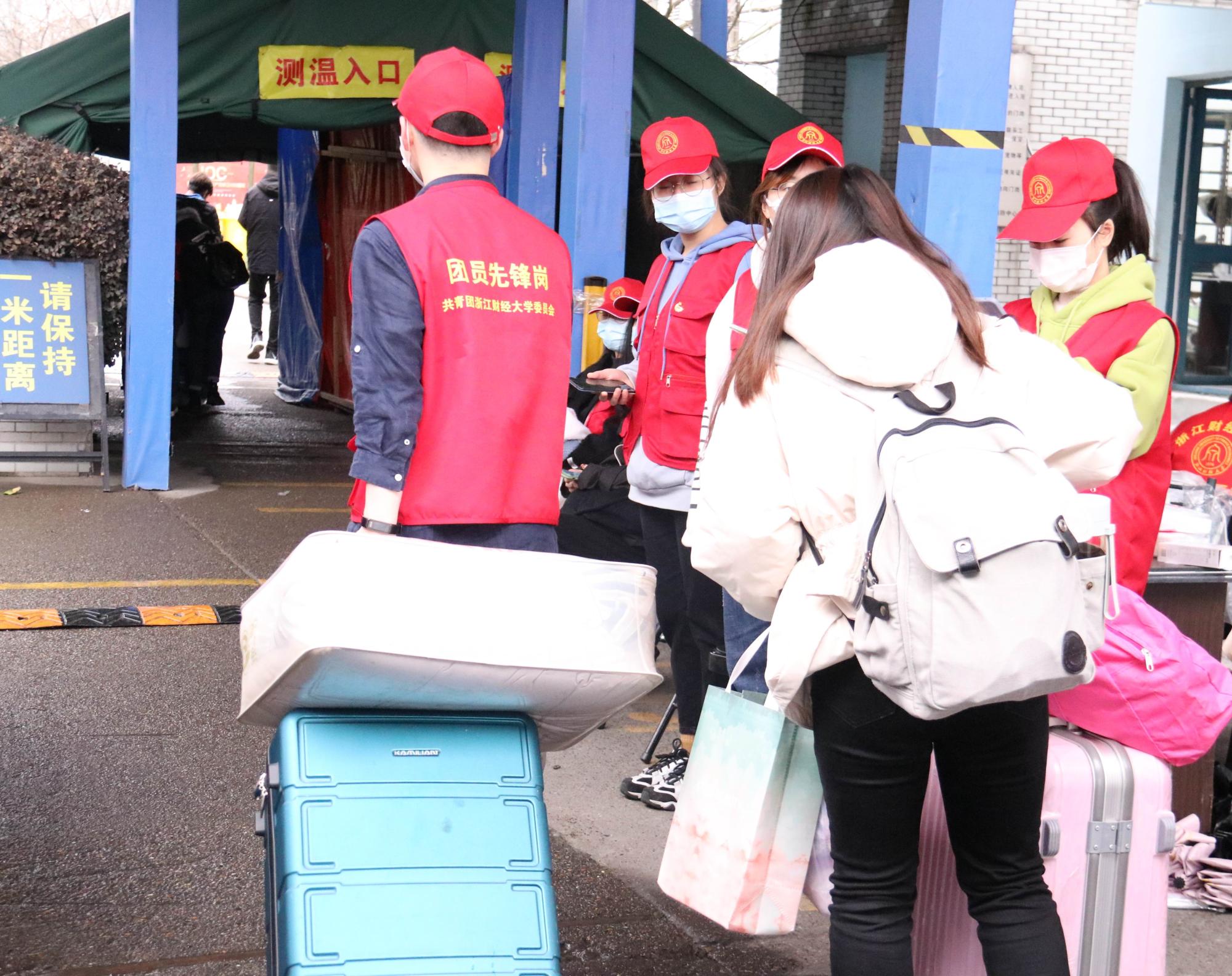 返校期间,青年志愿者们分工协作,各司其职,严谨有序地帮助每一位陆续到校的学生。他们有的帮助返校同学扫描返校码,有的协助相关工作人员测量体温和登记信息,有的指引同学按流程有序进校,有的帮助同学搬运大件行李,用实际行动把好入校第一关,让开学报到更加安全有序,有力地促进各项工作的顺利进行。志愿者们用汗水和微笑生动诠释了“奉献、有爱、互助、进步”的志愿精神,用自己的行动践行了当代青年的时代使命和责任担当。