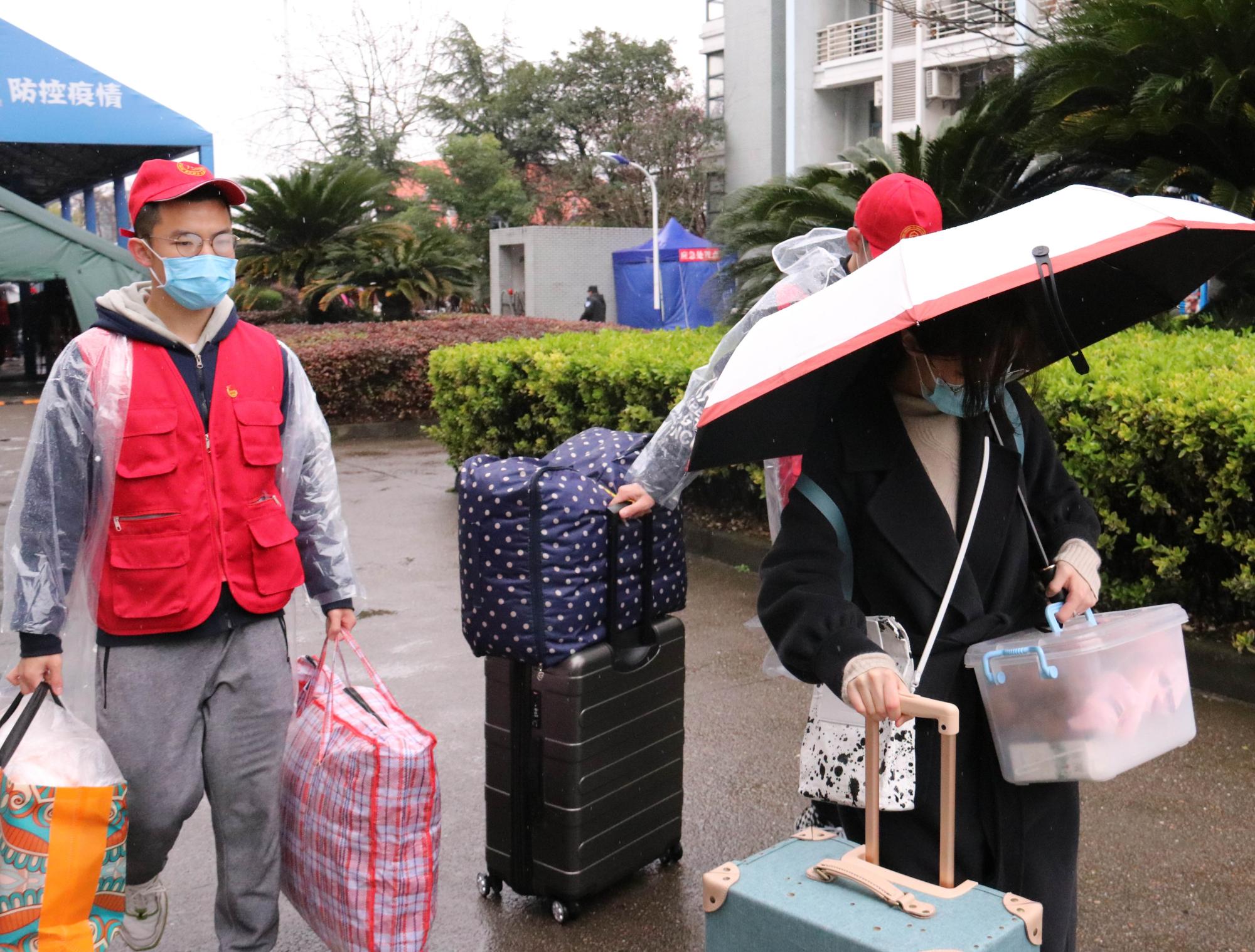本网讯3月6日至7日,伴随着绵绵细雨,来自全国各地的学生开始陆续回到久别的校园。有这么一群“红马甲”,他们分工明确、协调有序,为返校学子筑起了疫情防控的青春长城,他们就是浙财大的青年学生志愿者。