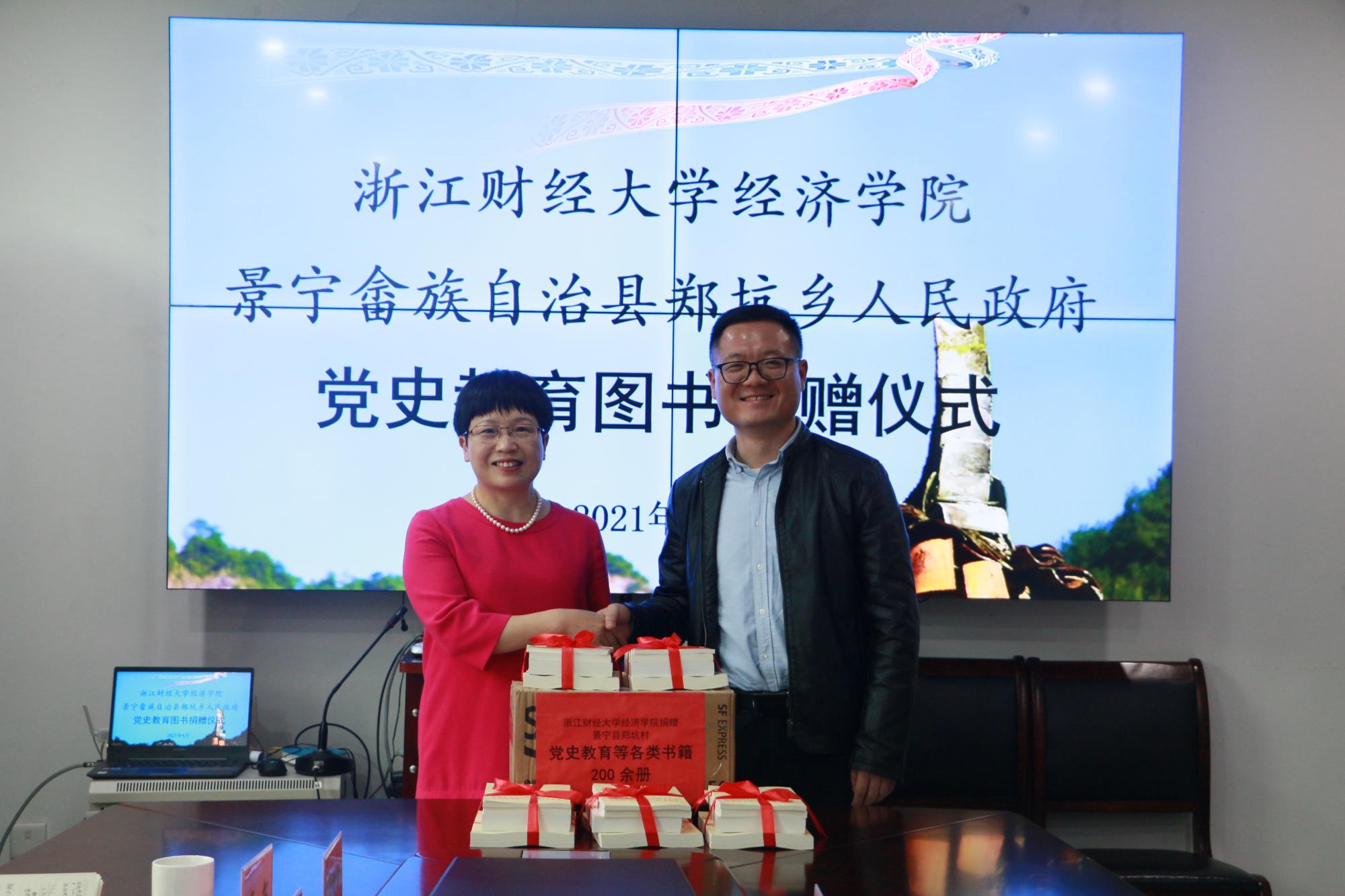 4月16日,在世界读书日即将来临之际,经济学院党委书记胡亦琴一行来到丽水市景宁县“第一个畲族党支部”郑坑乡郑坑村,看望留守儿童并举行图书及文具捐赠仪式。