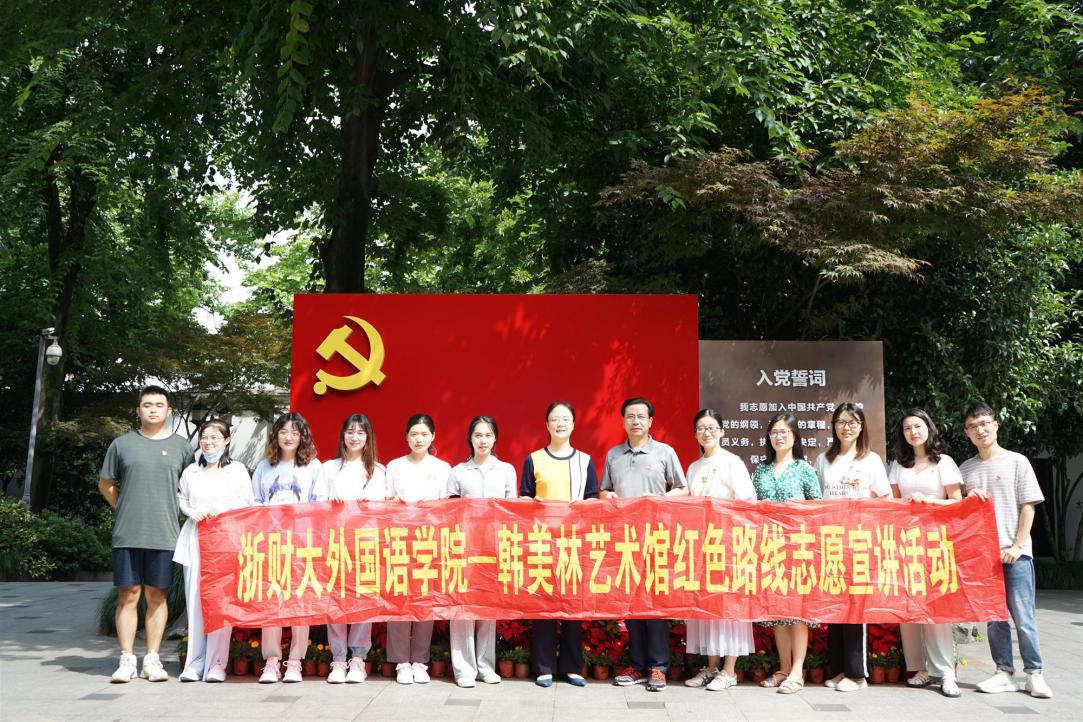机关教工党支部、研究生支部与韩美林艺术馆联合开展红色路线志愿宣讲活动,在杭州12处红色景点,录制全英文讲解素材,该视频将在韩美林艺术馆向观众长期展示播放。
