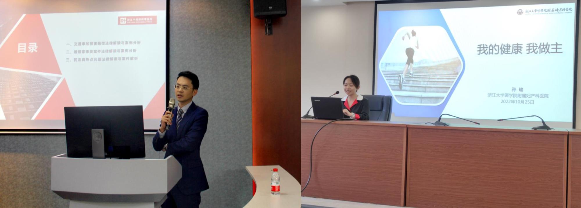 法律微讲堂上,来自浙江中格律师事务所的吕嘉诚律师,以教职工法律维权为主题,通过探析民法典热议话题,解析教职工身边的交通事故、家事婚姻等法律问题。女性健康微讲堂上,来自浙江大学医学院附属妇产科医院妇女保健部的孙瑜医师,围绕“我的健康我做主”这一主题,与女教职工们分享了日常卫生习惯、营养运动、心理调适和女性保健相关知识。