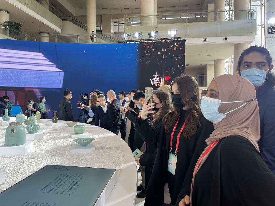 本网讯近日,第五届世界青瓷大会在浙江省人民大会堂拉开帷幕,我校国际学生受邀参加“宋瓷梦华”——青瓷沉浸式交互艺术展和开幕式。